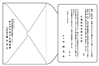 | 挨拶状は官製はがきよりも私製はがきに切手を貼って出した方が失礼にあたりません。 さらに、はがきよりもカードを洋封筒に入れて出したほうがより丁寧な印象を与えます。 |