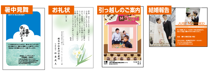 | プライベートの挨拶状もご相談ください。テンプレート多数ご用意しております。 |